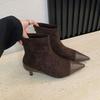 Mode Damen Spitzschuh Moderne Damen Stiefeletten mit niedrigem Absatz Schuhe Mode Flock Damen Kurze Stiefel Reißverschlüsse Schuhe Pumps