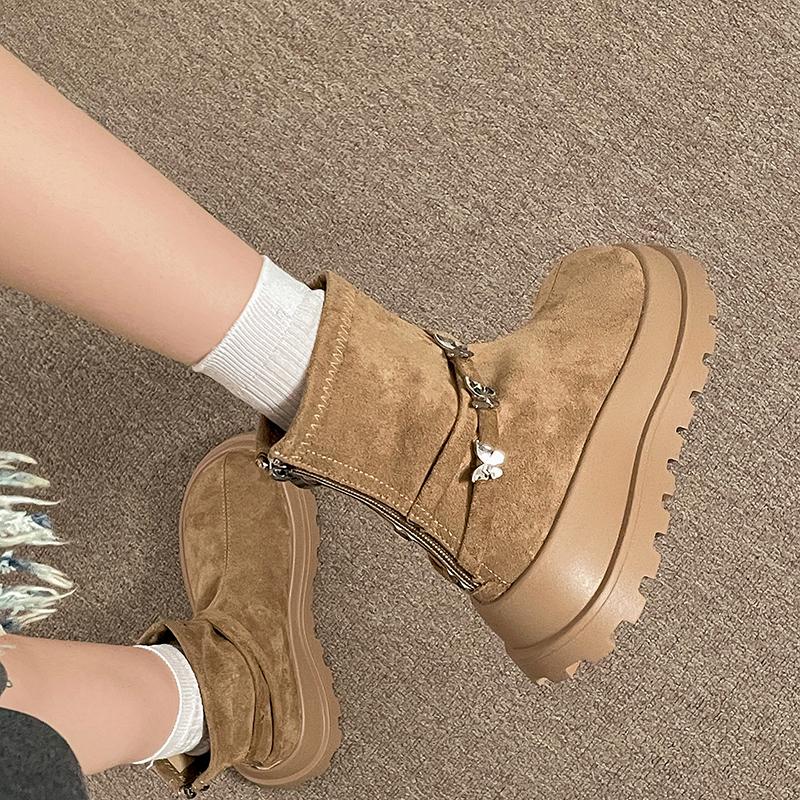 Mode Herbst Winter Dicke Sohle Damen Stiefelette Mode Plateau Damen Prägnante Reißverschlüsse Moderner Kurzer Stiefeletten