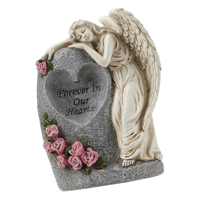 62KD Solarbetriebene Engelskulptur Gedenkvase Wetterfeste Harze Grabdekoration für Friedhofsgarten Außenbereich