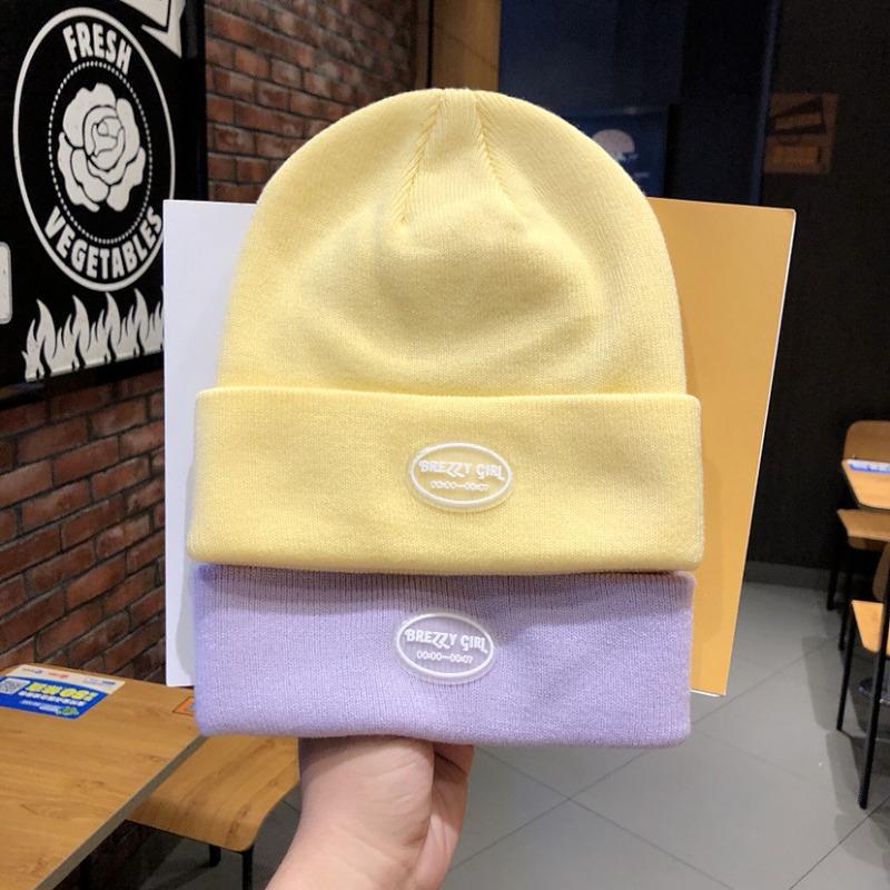 Hat Female Autumn and Winter Letter Round Label Knitted Hat Thin Street Hipster Versatile Student Couple Pullover Hat Male