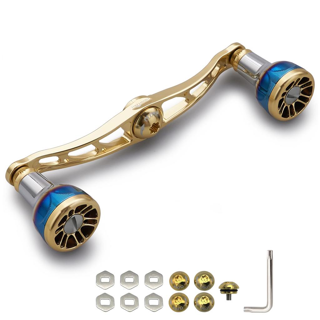 [Features] New V2.0 knob, improved overall chamfering, lightweight at 8.5g, and improved grip. New 105mm/115mm handles are strong and lightweight. [Size] Knob diameter 24.5mm, handle shaft distance 105mm/115mm. [Total Weight] 36.5g/38.5g. [Material] 70 series aviation aluminum. [Accessories - 105mm] Two 4x7mm center nuts, two 5x8mm center nuts, one DAIWA STEEZ center nut, one conversion sleeve, and one wrench. [Accessories - 115mm] Two 4x7mm center nuts, two 5x8mm center nuts, one DAIWA STEEZ center nut, six hex washers (for 4x7mm and 5x8mm mounting sections), and one wrench. [Compatible Models] Compatible with DAIWA, SHIMANO, and ABU GARCIA baitcasting reels with 4x7mm and 5x8mm mounting sections. 60-day warranty (excluding accessories) and unconditional returns and exchanges within 60 days. The following list does not necessarily include compatible reel handles, so if you have any issues, please contact us by email.