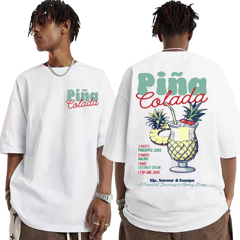 Lustiges Cocktail-Themen-Geschenk T-Shirt Herren Damen PINA COLADA Druck T-Shirt Männlich Sommer Mode Ästhetisches Gemütliches T-Shirt Streetwear