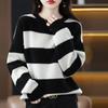 Modischer gestreifter Strickpullover langärmeliger Unterziehpullover Damen Herbst und Winter Neu Lockerer vielseitiger Rundhals-Pullover