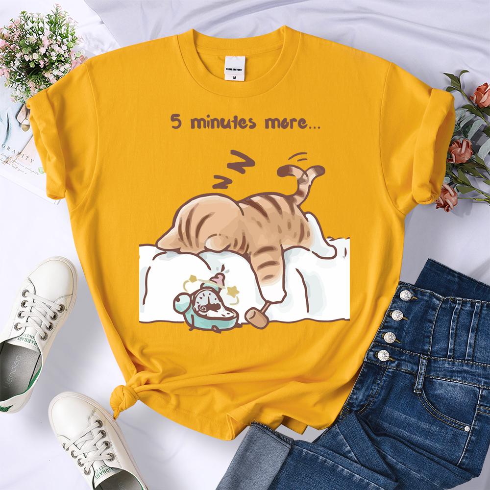 Die Katze, die immer schlafen will Musterdesign Damen T-Shirts Sommer All-Match Kleidung Trendy O-Ausschnitt T-Shirt Y2K Hip Hop Top
