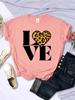 Vintage Leopard Love Forever Damen T-Shirt Mode Lässig Kurzarm Hip Hop Coole Kleidung Atmungsaktiv Übergroßes T-Shirt Weiblich