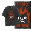 COOLMIND DB Katze Bedrucktes Baumwoll-Säuregewaschenes Exklusives Grafik-Unisex-T-Shirt Cooles Streetwear Herren T-Shirts Große Größe T-Shirt für Männer
