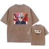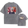 Unisex Anime Acid Washed T-Shirts 100% Baumwolle Retro Harajuku Stil Bedruckte Wash T-Shirts Oversize Sport und Freizeit Hip Hop