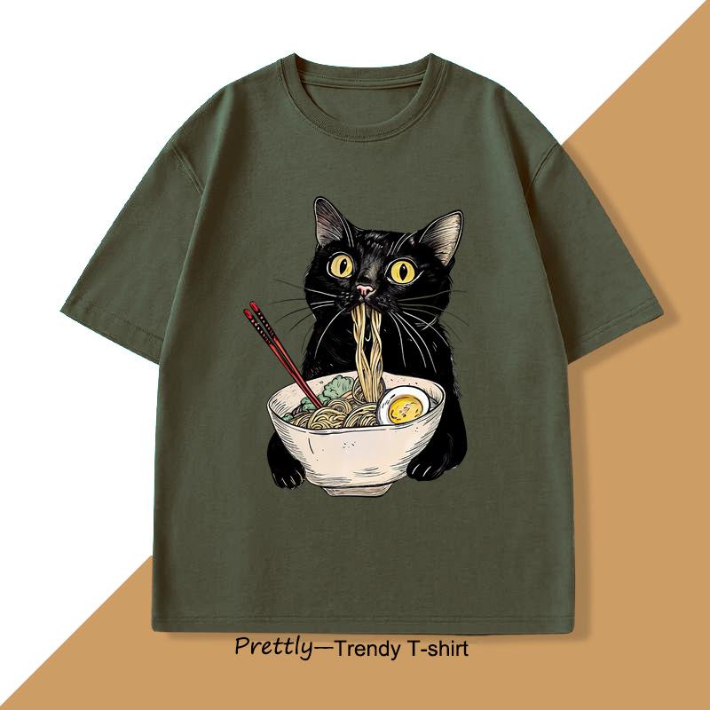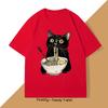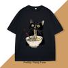 Nudel Katze T-Shirt Ramen Katze T-Shirt Foodie Liebhaber Grafik T-Shirts Retro Druck Herren Damen T-Shirt Baumwoll-T-Shirts Lockere Kleidung