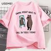Muss heute vielleicht dick anrufen T-Shirt Lustiges Meme T-Shirt Männer Frauen Baumwolle Bär Grafik T-Shirts Bedrucktes Kurzarm-T-Shirt