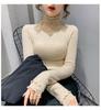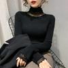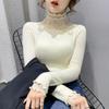 Herbst und Winter neue Mode schlank und dünn Temperament Perlen Spleißen Pilzkante Strickpullover Futterpullover innen