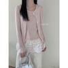 Autumn and winter new gentle wind sweet knitted sweater cardigan + lace splicing lace vest two-piece set for women