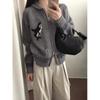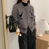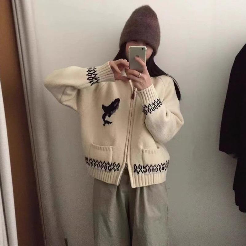 Reißverschluss Revers Jacquard Pulloverjacke Damenbekleidung Herbst und Winter Neu Locker Lässig Gestrickte Cardigan Top