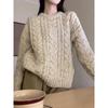 Lässiger Wind Rundhals-Pullover Damen neuer Herbst- und Winter-Design-Sinn Retro lässiger vielseitiger Strickpullover