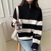Pullover Damen Herbst und Winter Reißverschluss halb offen Kragen kontrastierend gestreift gestrickter Pullover Top