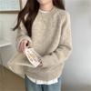 Crew neck lazy wind pullover sweater women's autumn and winter new loose high-end soft waxy knitted sweater top