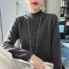 Sieben-Nadel verdickter Rollkragen-Pullover mit Jacquardmuster und Unterhemd innen, hochwertiges einfarbiges Oberteil