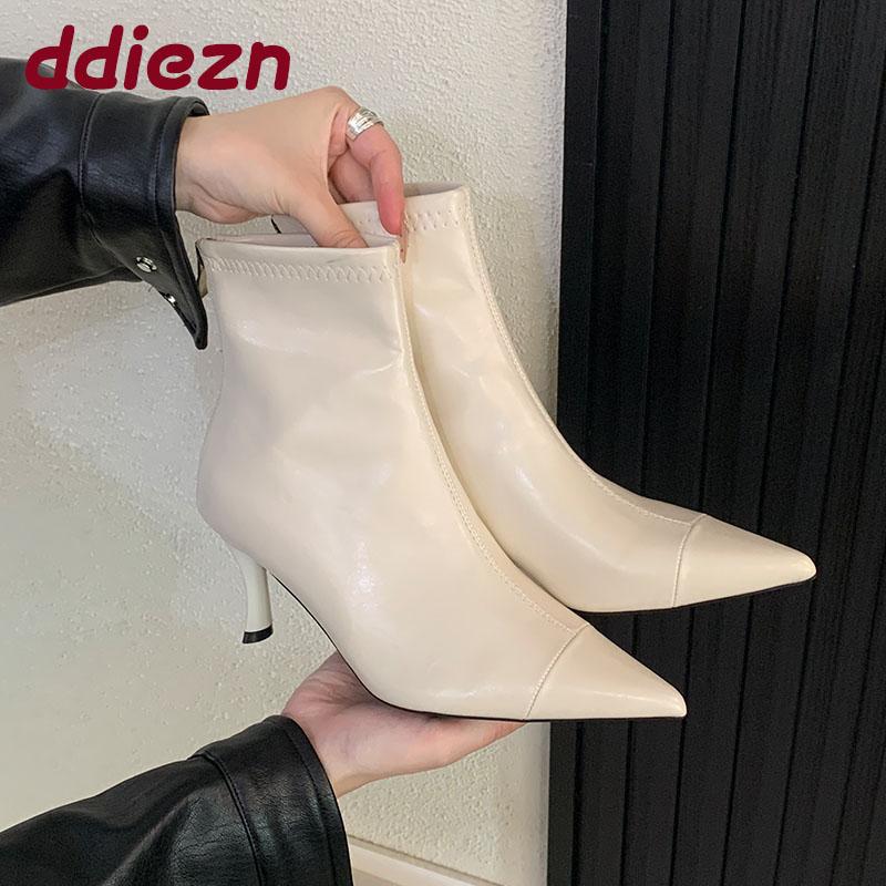 Mode Mode Elastische Damen Knöchel Stretch Stiefel mit Absätzen Schuhe Damen Spitzschuh Damen Moderne Kurze Stiefel Reißverschlüsse Schuhe