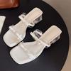 Mode Sommer Neue Blockabsatz Pantoletten Damenmode Quadratische Zehen Offene Zehen Schleife Rutschfest Abriebfest Quadratischer Absatz Kühl Wischen