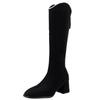 Mode Winter Neue Blockabsatz Hohe Stiefel Damenmode Eckige Zehenpartie Wildleder Hinterer Reißverschluss Rutschfest Verschleißfeste Stiefel