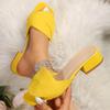 Mode Sommer 2025 Neue Übergröße High Heel Sandalen Gestrickte Atmungsaktive Blockabsatzsandalen Mode Braun Bequeme Damenschuhe