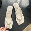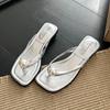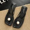 Modische Perlen-Designer Damen Pantoletten mit Absatz Zehensteg Sandalen Frau Flip Flops Mode Slides Sommer 2025 Neu Elegant Sandalias De Mujer
