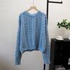 Autumn and winter new retro twist knitted sweater top loose round neck lazy wind sweater pullover woman