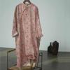 Johnature Damen Vintage Print Blumenkleider Stehkragen Langarm Ramie Hochwertiger Stoff Frühling Chinesischer Stil Kleid