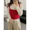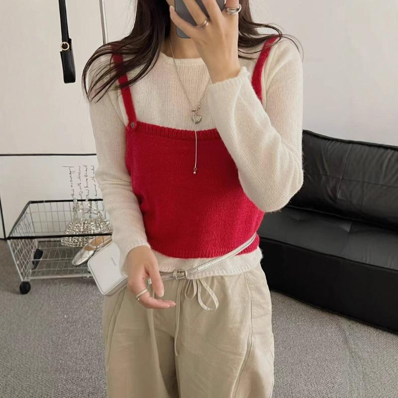 Herbst und Winter süßer und würziger weicher wachsartiger zweiteiliger Pullover weißes T-Shirt mit kleinem Träger gestrickte Weste für Damen