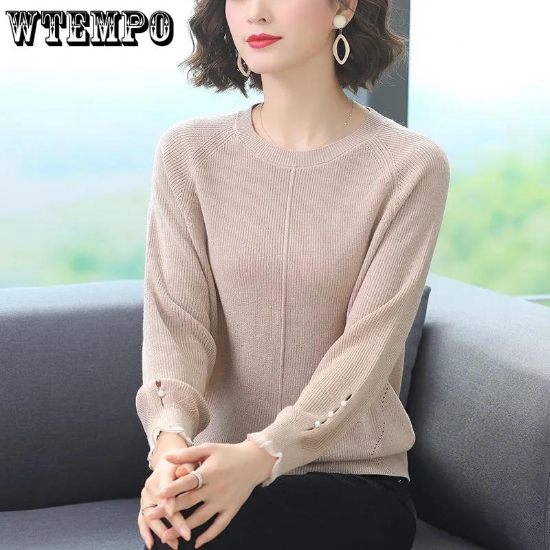 Lässiger Pullover Lockerer Pullover für Damen Langärmliger Dünner und Vielseitiger Strickpullover Basisschicht für Frühling und Herbst