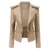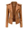Frühling Herbst Motorrad PU Lederjacke Damen Lässiger Ledermantel Damen Langarm Umlegekragen Einfarbig Oberbekleidung