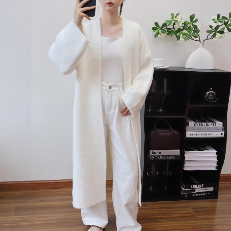 Imitation mink velvet knitted cardigan women's autumn and winter new loose long temperament solid color coat coat