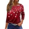 Damen T-Shirt mit Weihnachtsdruck, 3/4-Ärmel, für den Alltag, Wochenendmode, Basic, Rundhalsausschnitt, normales Oberteil