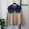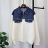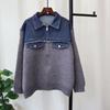 Autumn and winter new splicing denim knitted cardigan loose casual versatile zipper sweater jacket women