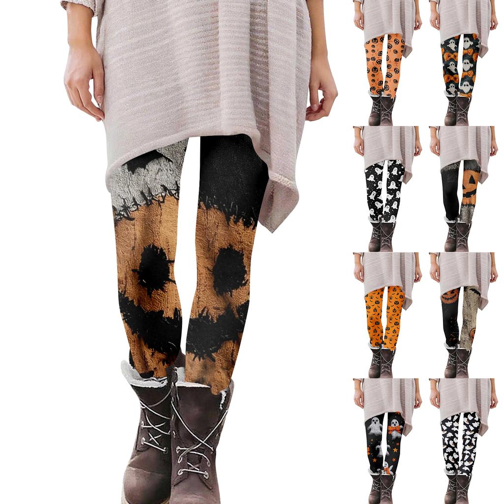 Damen Casual Mode Outdoor Halloween Bedruckte Slim Elastische Yogahose Cropped Hose