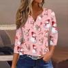Damenmode Lässig Halloween Bedruckt V-Ausschnitt Kurzarm Zierknopf Dreiviertelarm T-Shirt Top