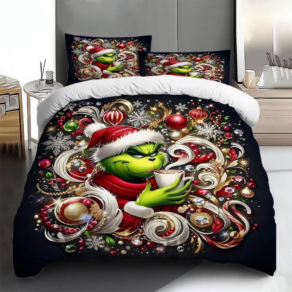 Mit Weihnachtsdekoration bedruckter Bettbezug, superweiche gebürstete Mikrofaser, bequemes Doppelbettset mit Reißverschluss und 2 Kissenbezügen