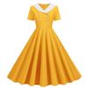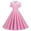 Summer Women's V-Neck Short Sleeve Solid Color Retro Double-breasted False Button Pendulum Dress