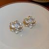 Koreanische Imitation Perlen Öl Tropfen Blume Steckerohrringe für Damen Elegante Metall Blütenblatt Ohrringe Mode Party Date Zirkon Geschenke