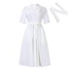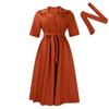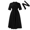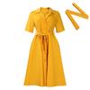 Women's Summer Short Sleeve Suit Collar Strap Solid Color Large Size African Dress