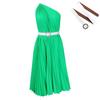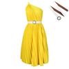 With belt women's clothing new fashion temperament slanted shoulder solid color pleated large skirt