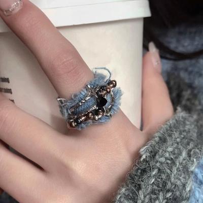 Stern Denim Ringe Herz Metall Perlenringe Mode Y2K Öffnungsringe Streetwear