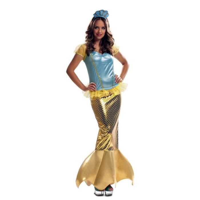 Meerjungfrau Kostüm für Damen - Marke - Modell - Gelb - Blau und Gold - Größe M/L