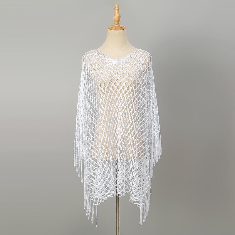 Seaside knitted monochrome mesh vacation sunscreen sunscreen sexy summer hollow beach shawl women