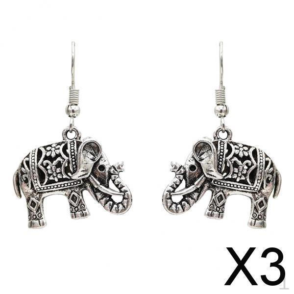 3x Vintage Tibetischer Silber Stamm Ohrring Elefant Anhänger Hängehaken Ohrringe