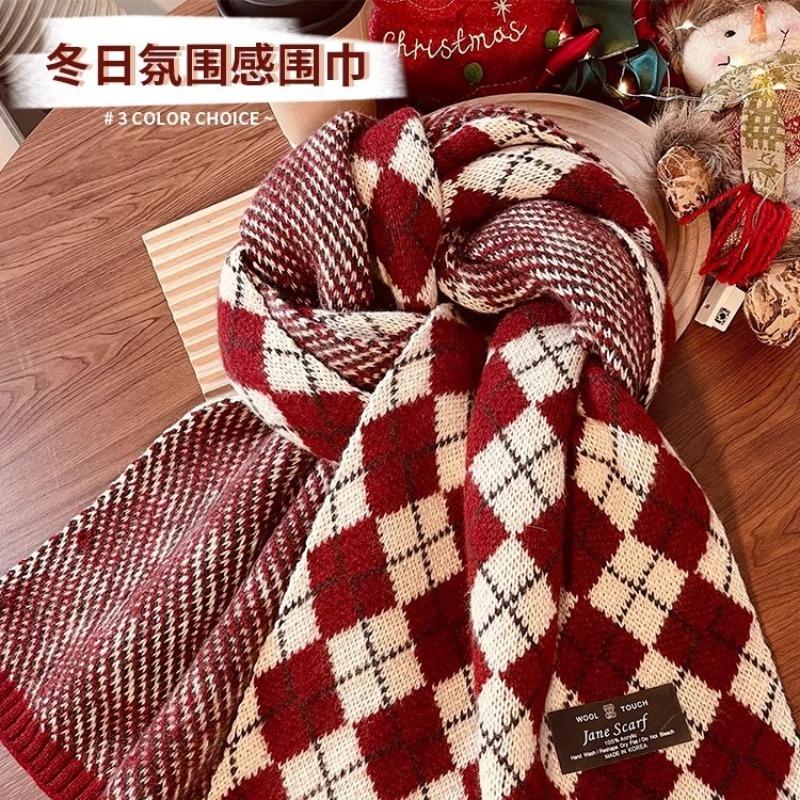 Christmas scarf, winter women's wool scarf, new red plaid, versatile, high-end, new shawl to keep warm