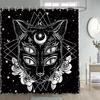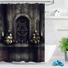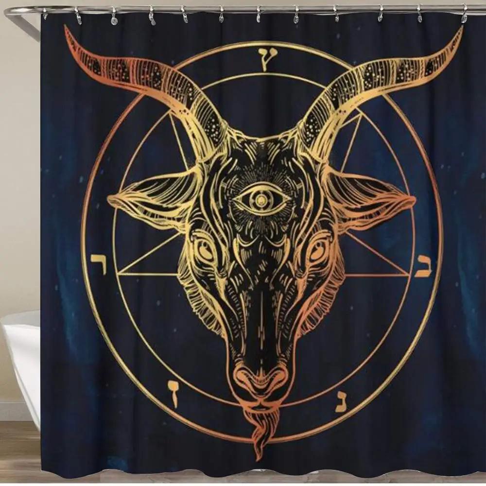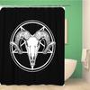 Duschvorhang Pentagramm mit Dämon Baphomet Satanischer Ziegenkopf Binäres Symbol Tattoo Wasserdichtes Badezimmer-Vorhangset mit Haken
