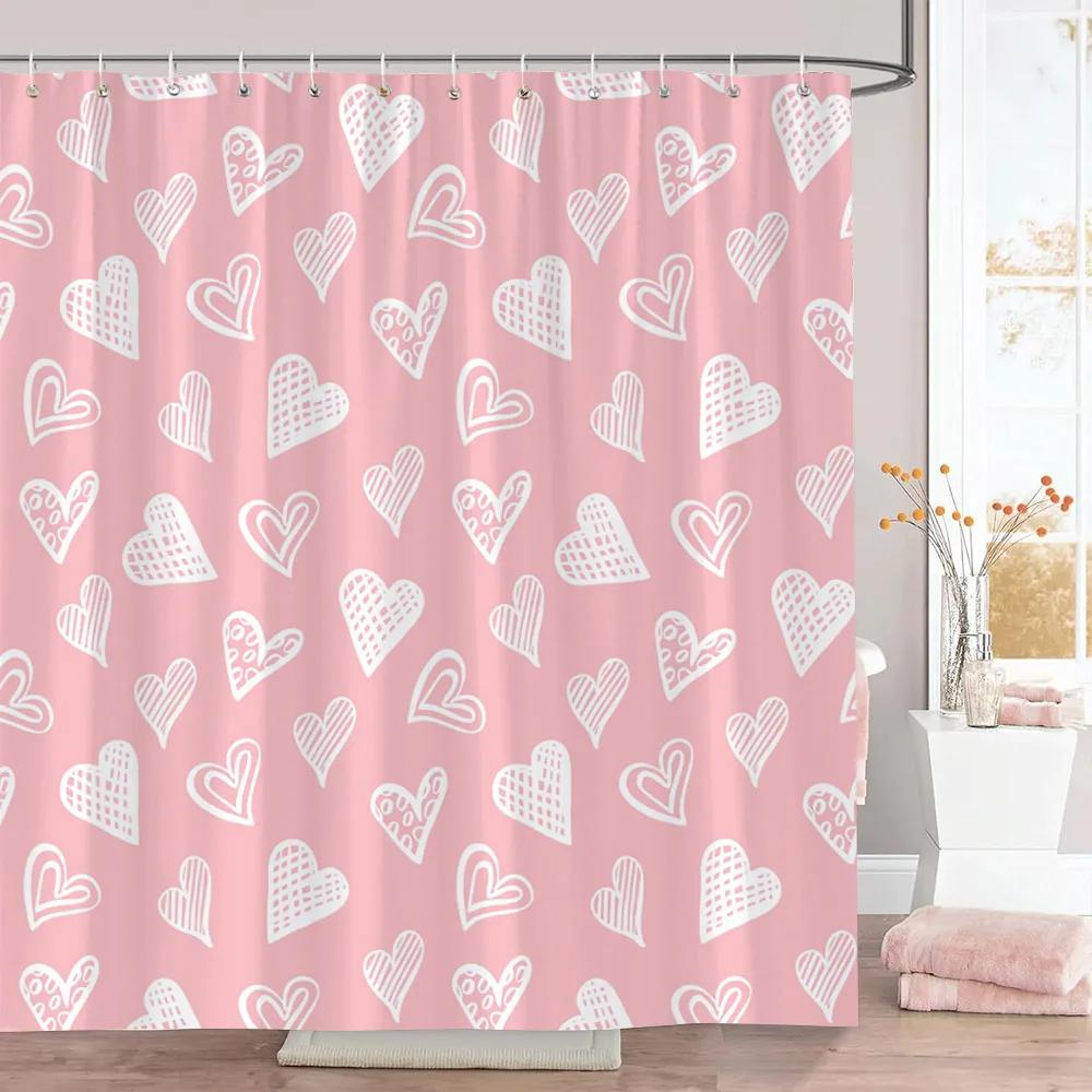 Rosa Herz Duschvorhang Weihnachtsgeschenk Geometrische Linien Schlicht Modern Polyesterstoff Duschvorhänge Badezimmerdeko mit Haken