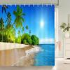 3D Strandlandschaft Duschvorhänge Meer Ozean Mittelmeer Badezimmervorhang Wasserdichtes Stoff Dekor Badevorhang