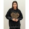 Einfaches Leopardendruck Herz Damen Washed Sweatshirt Herbst Baumwolle Sportbekleidung Lässig Frau Streetwer Lockere Kleidung
