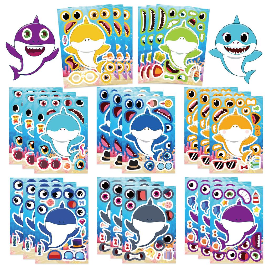 8 Cartoon Shark Make A Face Face Change Sticker DIY Hand Account Small Card Mobile Phone Case Decoration